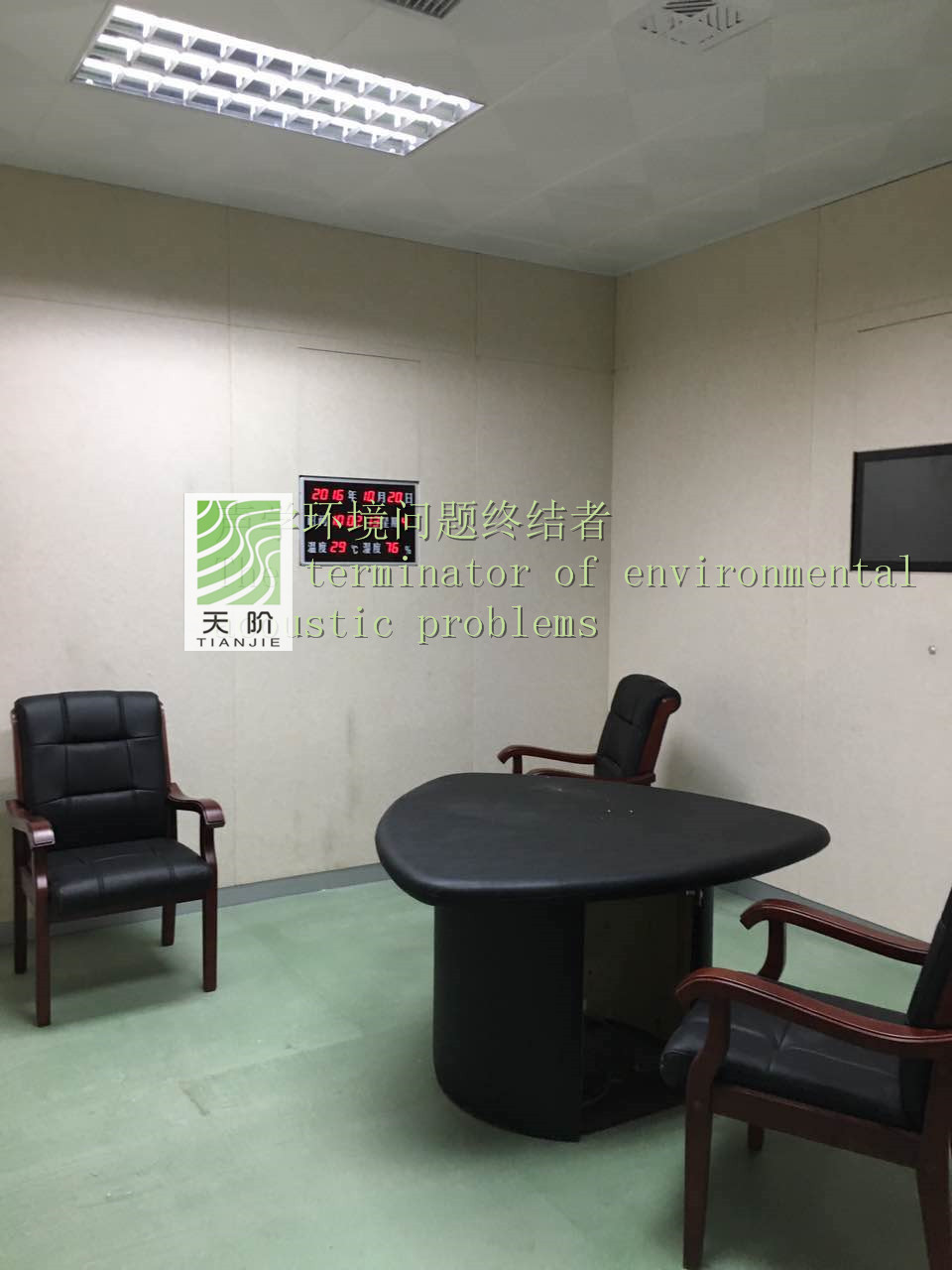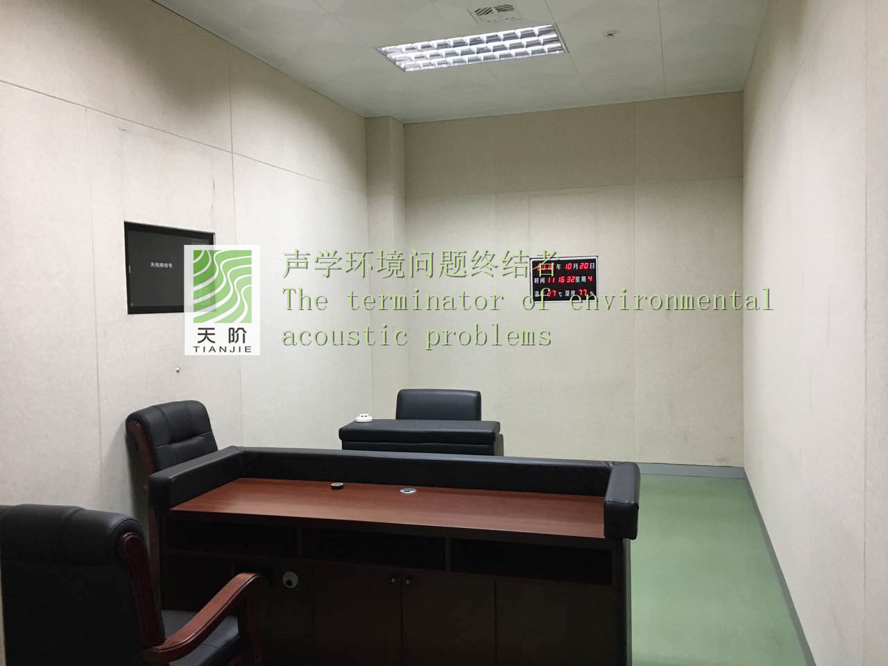 聚酯纖維吸音板具有高密度、環保、防火、吸聲頻帶寬、裝飾性強、施工簡單、易于切割、無粉塵污染等性能,飾面顏色及材料選擇性廣、能很好地滿足客戶多樣化的聲學及裝飾需求。此次惠州公安局采用天階牌聚酯纖維吸音板作為審訊室的減噪處理。