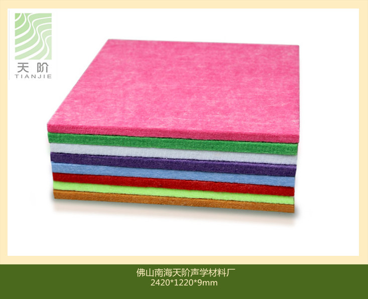 聚酯纖維吸音板密度高。首選聚酯纖維吸音板的密度必須要高的,也就是我們說的板子要硬才行,這個相對于市面上一些便宜的板子稍微貴5元一平米,一份價格一份貨,這種材質的聚酯板,不僅顏色純正,容易倒邊,不起毛球,非常有質感,高檔很多。