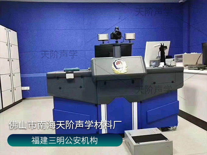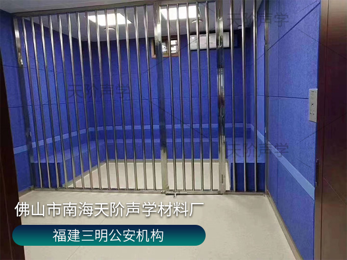 福建三明公安局項目,審訊室選用實用又實惠的聚酯纖維吸音板,空隙吸音降噪,有彈力能卸掉大部分撞擊力,做不燃處理,安全安心。