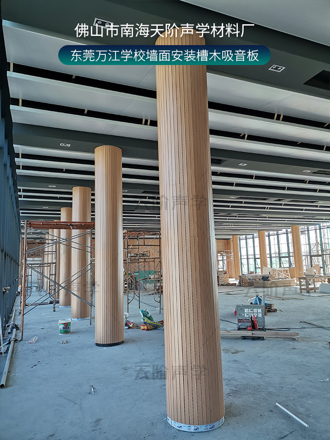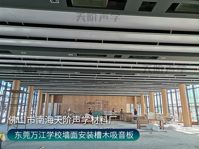 東莞萬江學校墻面安裝槽木吸音板