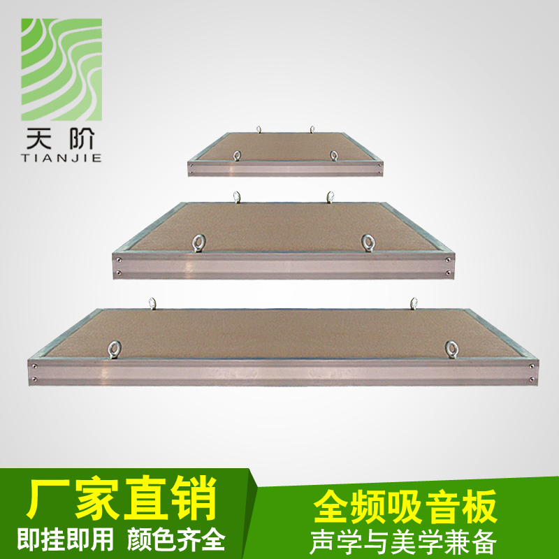 常見(jiàn)的空間吸聲體由骨架、護(hù)面層和吸聲填料構(gòu)成。材料的選擇應(yīng)視空間吸聲體的大小、剛度和裝修要求而定。骨架可采用木材、角鋼、薄壁型鋼等。護(hù)面層可采用塑料窗紗、塑