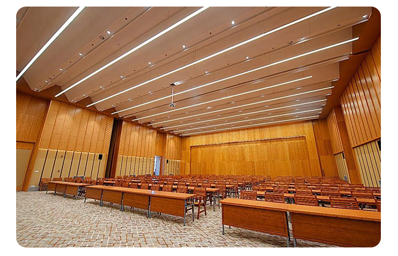 高強要求吸聲類場所:歌劇院,影劇院,多功能廳,會議室,演播廳,音樂廳,商務辦公廳,大禮堂,體育館,學校,酒店。