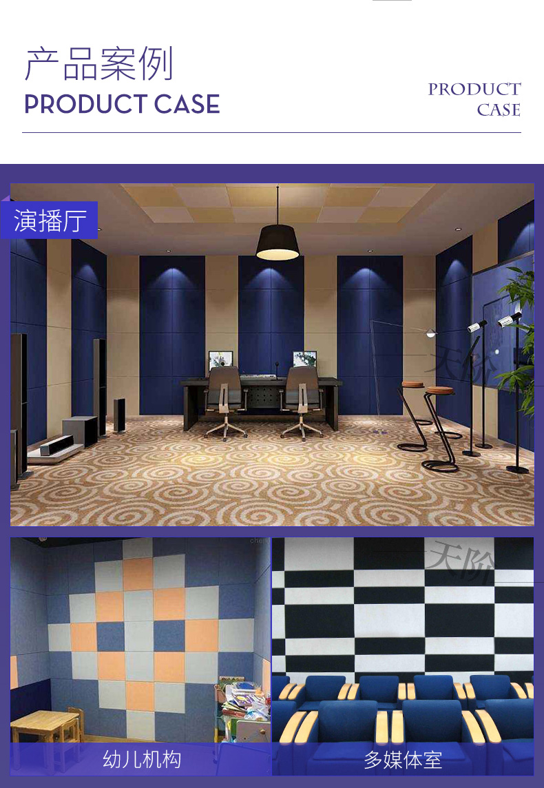 適用場所:歌劇院,影劇院,錄音室,錄音棚,播音室,試音室,電視臺,電臺,商務辦公廳,多功能廳,會議室,演播廳,音樂廳,大禮堂,體育館,休閑娛樂城,酒店,KTVBAND房,高級別墅或家居生活等對聲學要求較嚴格的場所。