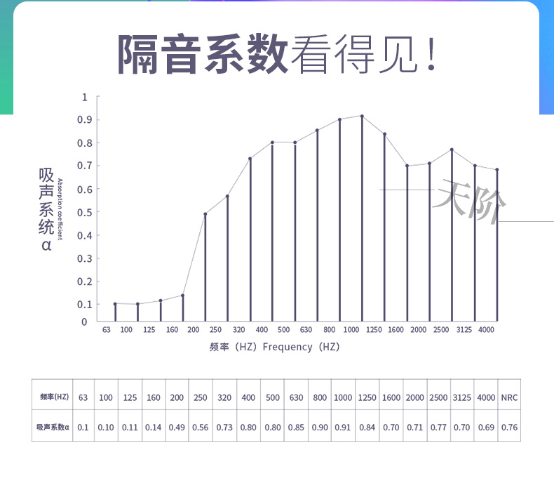 聚酯纖維吸音板和其他多孔材料的吸音特性類似,吸音系數隨頻率的提高而增加,高頻的吸音系數很大,其后背留空腔以及用它構成的空間吸音體可大大提高材料的吸音性能,成為寬頻帶的高效吸音體。