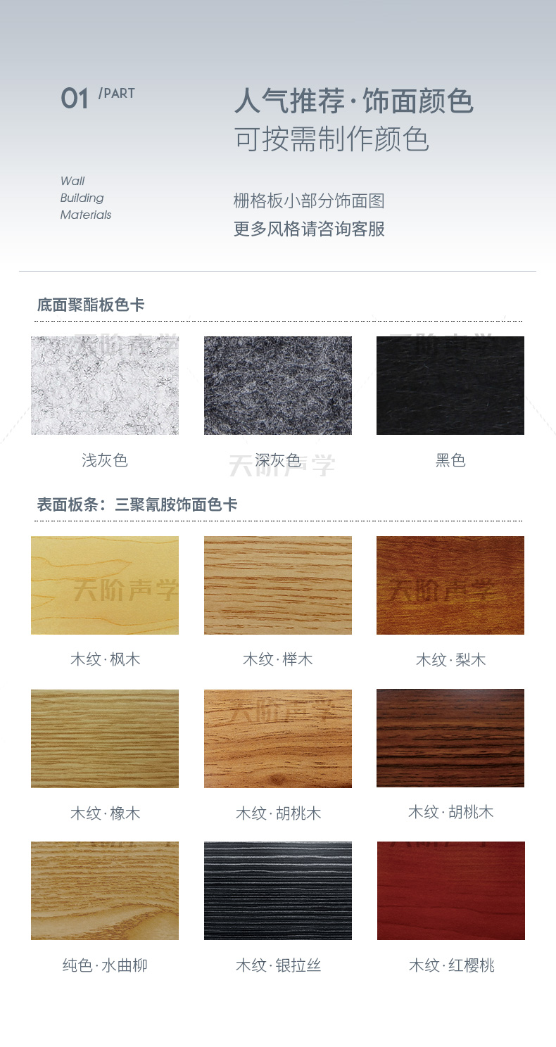 適用于多種場所:多種飾面,滿足不同風格家裝,店面裝修,辦公室,建筑墻面,廣告牌制作,音樂廳,歌劇院,錄音室等(內外墻,室內天花)。