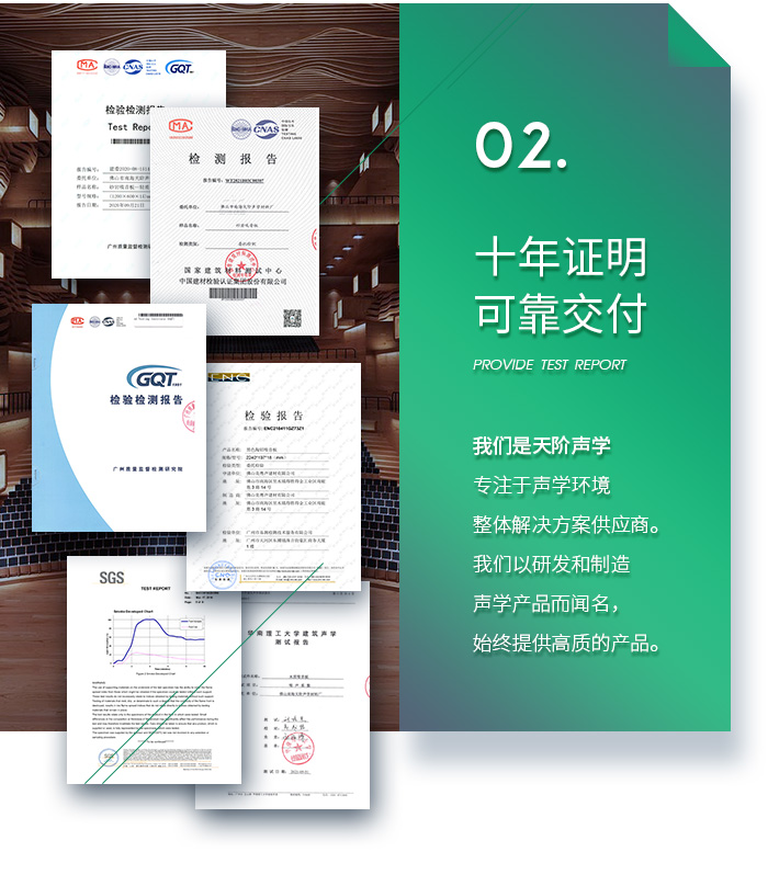 天階在聲學材料領域不斷提高自身的產品品質和服務水平,使公司產品長期得到了國內諸多大學的聲學教授、國家大型建工集團、國內眾多知名裝飾設計公司的大力推廣。我們在今后發展的道路上,將更加狠抓產品品質,信守合作承諾,與廣大新老客商攜手共進共贏。