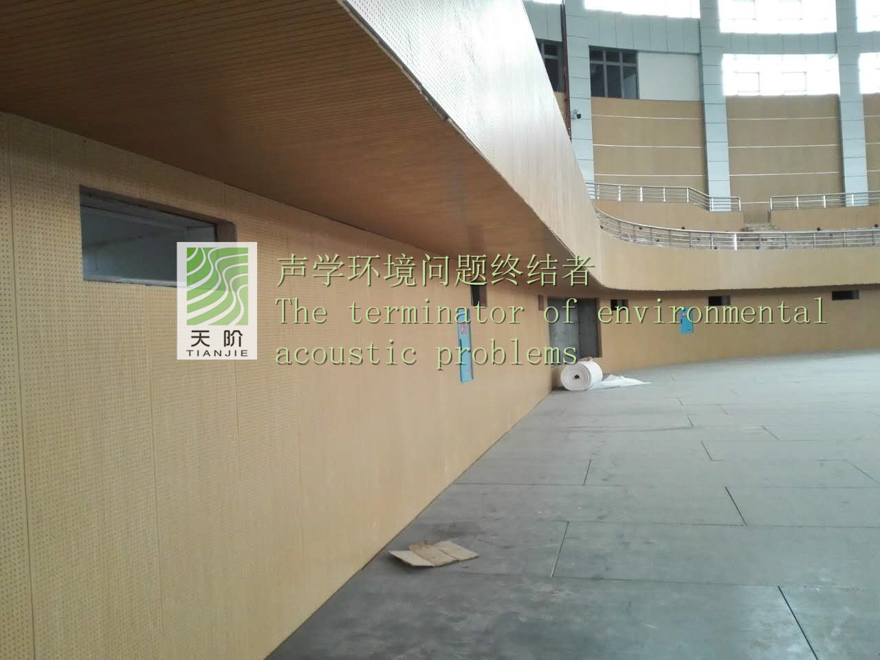 湖南省懷化體育館位于湖南省懷化市。天階聲學經過多次與客戶洽談。懷化體育館的室內聲學優化設計方案也是天階聲學獨立設計完成。公司以優質的產品質量和專業的服務,獲得客戶的認可,最終簽訂合同。現在貨已供完,通過驗收,并已投入使用中。項目多次獲得客戶和甲方的認可和贊揚,此工程運用了天階牌吸音板5000平方的防火孔木吸音板。