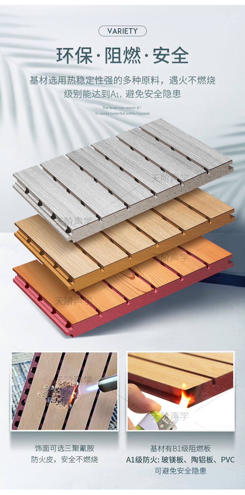 4、安全防火――具有槽木吸音板防火等級A1。這點己通過專業部門檢測通過。