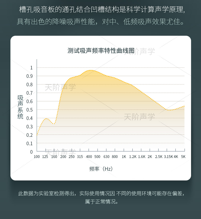 天階-會議室防火阻燃木質吸音板-吸聲性能吸聲頻譜高,對低、中、高頻的噪聲均有較佳的吸聲效果。