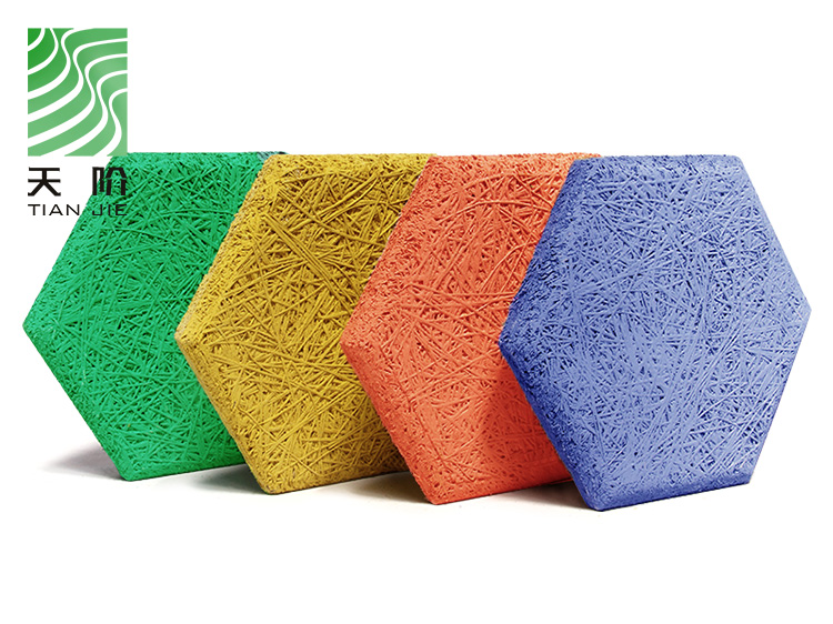 外觀獨(dú)特、吸音良好--獨(dú)有的表面絲狀紋理,給人一種原始粗獷的感覺,滿足了現(xiàn)代人回歸自然的理念。表面可做飾面噴色和噴繪處理.